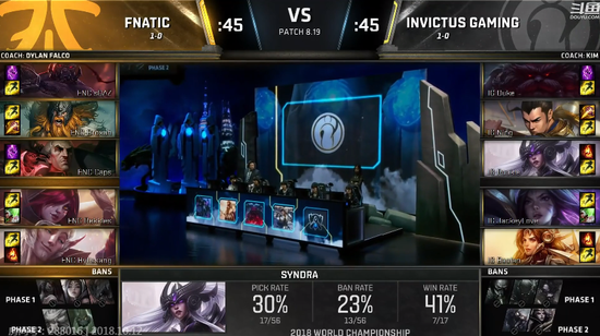 阵容方面FNC选了一整套冲脸阵容,而IG在最后一手拿出辛德拉作为Counter。