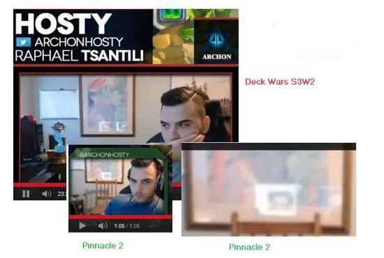 2015年的《炉石传说》Pinnacle杯的比赛(此为线上比赛)中,选手Hosty在直播打比赛的时候被观众发现他正在另一个电脑上开着直播页面,被发现的原因令人捧腹:他身后墙上挂着的画是用玻璃装裱的,反光效果非常好,以至于观看直播的人很容易看清了两个屏幕在玻璃上反射的影子。另外,他本人在直播中眼睛也不住的瞟向另一边,动作非常可疑。
