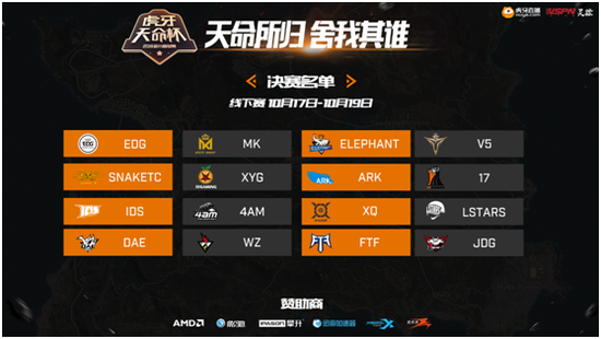 10月16起,2018虎牙天命杯积分晋级赛线下总决赛正式开启,争夺最终的一百万元奖励和通往PCPI的最后一张门票,究竟是4AM战队续写神话,还是国内黑马战队爆冷吃鸡成为新科冠军呢?众多战队的精彩表现即将来袭,让我们一起期待队员们的精彩表现吧!