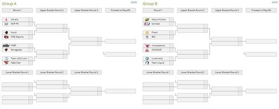 赛制:16支战队分为两组,小组进行BO3双败赛,每组三支战队晋级淘汰赛;淘汰赛为单败BO3赛制,小组第一直接晋级第二轮,小组二三晋级第一轮