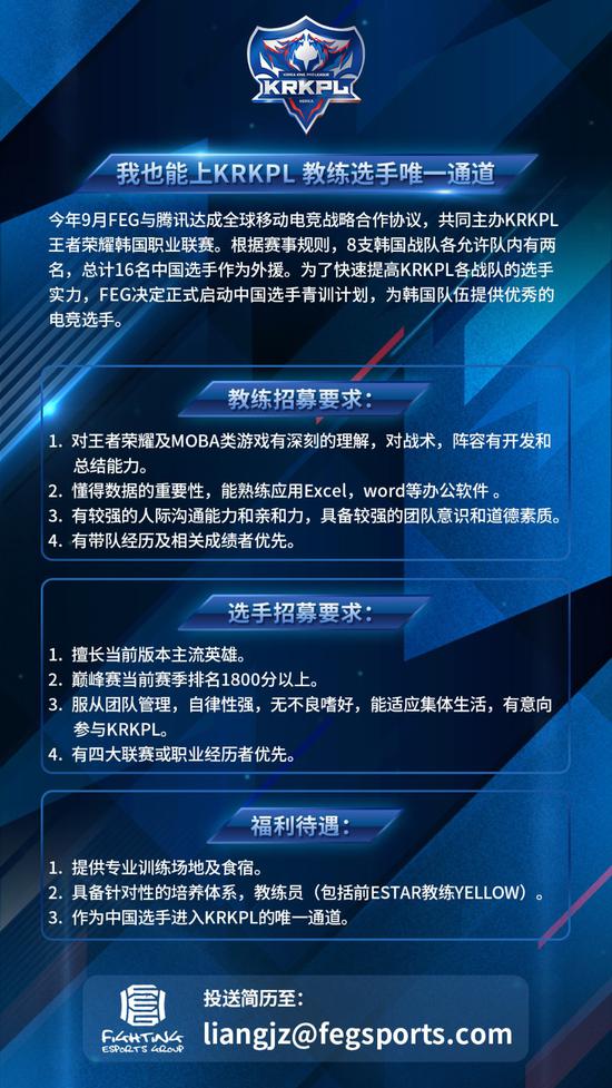 KRKPL招募教练、选手及外援 FEG启动青训计划