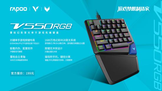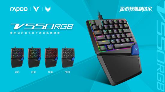 雷柏首款幻彩背光单手游戏机械键盘V550RGB,强势登陆。
