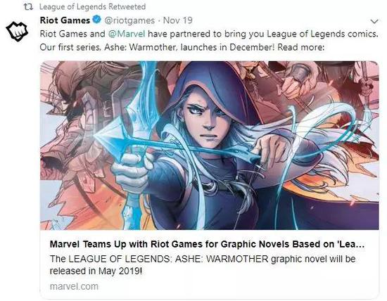 漫威官网透露,从今年的12月19日开始,《英雄联盟》漫画将会在网络平台上每月发布一次更新,并且明年五月两公司合作的首部视觉小说《英雄联盟:战争之母 艾希》(League of Legends: Ashe: Warmother)将会正式与粉丝见面。