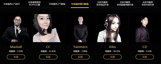 图为部分候选人每逢比赛,解说台上的他们总是无比忙碌。他们需要对局势做出准确理解,为玩家分析比赛走向;他们需要读懂双方博弈,对BP做出独到预测;他们更需要有对DOTA2的赤诚之心,让玩家的情绪随着比赛的进行而变化。他们中有前职业选手,对战队和选手的认识更具权威性;也有历练多年的科班解说,语言风趣幽默深受玩家喜爱。25位在2017-2018赛季,参加了Major/Minor/Ti8级别赛事正赛解说/分析工作的解说中,哪一位的解说风格最得你的认可,哪一位陪伴你度过了最多精彩比赛?而新的一年中,也希望他们能陪伴我们,享受更多难忘的,精彩的胜利时刻。