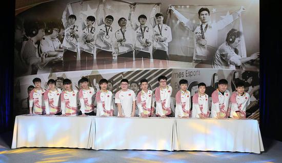 获得“亚运荣誉证书”的是英雄联盟项目中国团队 姬星、 苏汉伟、田野、简自豪、刘世宇、史森明、严君泽;王者荣耀国际版(AoV)中国团队 李托、张宇辰、王添龙、刘明杰、潘佳冬、向阳、谢涛;皇室战争中国团队 黄成辉。