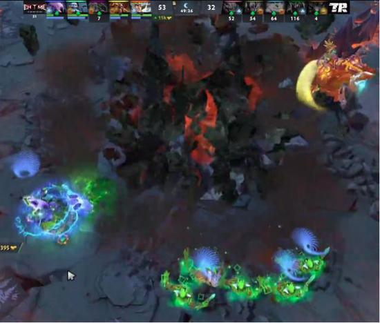 47分钟EHOME强打三代肉山,TR不放,在肉山血量见底时虚空毅然放大拿下了不朽盾和刷新碎片,恐怖利刃打死虚空和小牛,EHOME调整过后再次接团,虚空第二个大招被复仇之魂用命化解,双方都贯彻死了就买这一理念。可在队友身亡的情况下恐怖利刃也无法苟活了。TR的顶梁柱买活死,比赛再无悬念,EHOME一波推平TR基地拿下PGL布加勒斯特Minor的出线资格。
