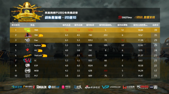 第二届凤凰网杯PUBG电竞挑战赛名单出炉此次赛事云集了国内各路强队,例如LGD、DAE、MGB、Unite、WEIBO、BA、LYG、WEIBO等,经过了三个比赛日的较量最终有如下战队成为了佼佼者,拥有挑战上届榜单霸主的机会他们分别是:TMS、TBA、Dae、heybox、HG、SC、StarLucK、EOP、MGB、PGT、CBT。他们最后晋级赛的赛事积分如下: