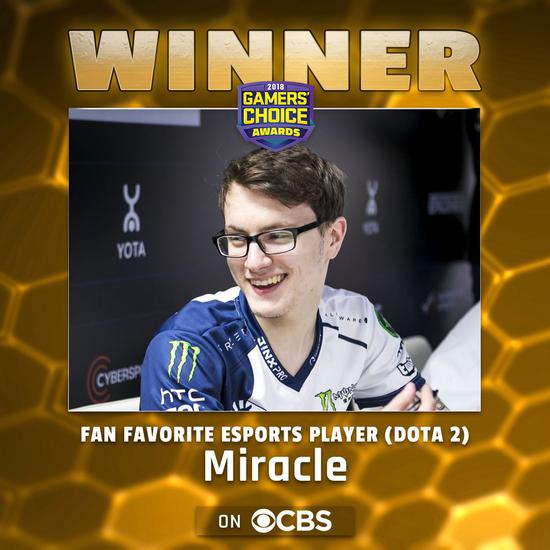 去年一年,Liquid在夺得TI7冠军之后依然保持着非常高的竞技水平,在参加的几乎每个DPC赛事中都有着不错的成绩。TI8面对冠军魔咒,他们虽然没能破除,但是第四名的成绩已经很好了。再加上Miracle良好的个人形象以及出众的技术,拿到玩家最喜爱的选手奖也不足为奇。当然了,这个在美国CBS电视直播的奖项主要面向的还是欧美玩家,像独联体地区、中国和东南亚地区对此都没什么了解,不然这个DOTA2的奖项还真说不好会落在谁的身上。