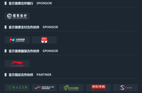 NeXT2018冬季赛与8家厂商达成了商业合作。招商银行成为官方首席合作银行,中国银联云闪付成为官方首席支付合作伙伴,中国李宁担任首席服装合作伙伴,其他官方指定合作伙伴分别是雷蛇、ROG玩家国度、EVCARD、京东手机、爱洛。这再一次证明了大众厂商对NeXT品牌实力的认可。