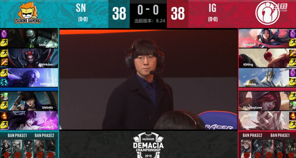 12月20日,德玛西亚杯西安站正式开赛。本次比赛采用双败赛制,首轮八支队伍进行4场BO1。第一场比赛由刚刚S8夺冠的IG战队迎战新赛季重组的SN战队。