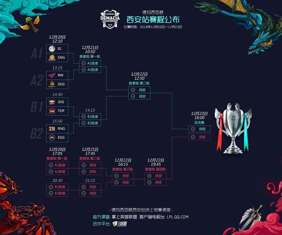 由腾讯游戏、《英雄联盟》主办,量子体育VSPN承办,西安曲江新区管理委员会担任指导方的2018年德玛西亚杯西安站暨冬季赛于12月20日在西安曲江国际会展中心重磅开幕。在第一天的比赛中,八支来自LPL的顶级职业战队就捉对展开厮杀,揭幕战新科世界冠军 iG轻取SN进入胜者组,随后三场比赛RW、TOP和RNG战队分别战胜各自对手挺进第二天的胜者组比赛,而SN、SDG、JDG和EDG战队则跌入败者组,最终通过败者组两场BO3的较量,SN、EDG分别战胜SDG和JDG顺利晋级下一轮,SDG与JDG战队则遗憾止步本次德杯首轮。