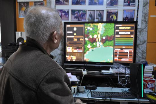 他叫杨炳林,今年已经83岁高龄。谈到这个年龄段老人的日常活动,大多数人是在公园围坐下象棋,或是在棋牌室打打麻将。然而你能想象一位80多岁的老人坐在屏幕前端着手柄专注的模样吗?杨炳林就是这样一位“特殊”的老人,是一位真正意义上的老玩家。自从退休后,杨老先生把自己领进了游戏的门。每天的下午3点到6点,是老人的游戏时间。从最初的小霸王学习机到现在的最新的小霸王Z+新游戏电脑,这一玩就是20年。