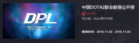 由国家体育总局体育信息中心主办,完美世界官方合作,Mars耀宇传媒承办的官方电竞赛事,2018DPL中国DOTA2职业联赛第二赛季·公开赛,将于11月3日先行启动。DPL公开赛将通过11月3日,11月4日2个比赛日的单败淘汰赛,角逐出前往DPL正赛的2个比赛名额!本次2018 DPL中国DOTA2职业联赛第二赛季在赛制上进行了全新升级,首度推出面向广大DOTA2战队选手及用户的DPL公开赛,旨在挖掘潜力新人,塑造健康的职业竞技联赛环境。本次DPL公开赛报名专题页面已经通过赛事合作平台VARENA正式上线,即日起用户可以登录以下页面链接进行报名参赛。
