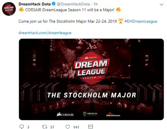 Dreamhack公布了DOTA2 2018-2019赛季第三个Major赛事——梦幻联赛S11。
