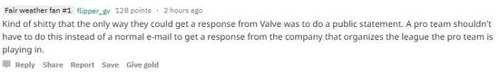 —他们只能通过公开的社交媒体才能获得V社的回复?这算什么事。一支职业队伍应该能够通过邮件的形式就从赛事举办公司获得他们应得的回复,而不是在推特上公开。