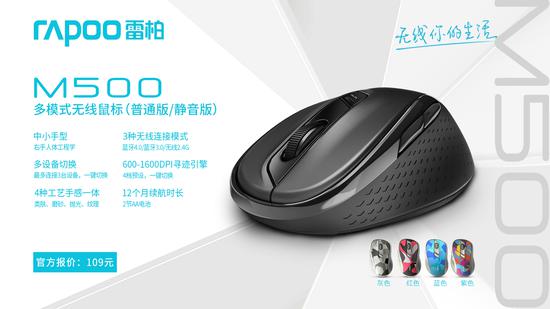 雷柏M500多模式无线鼠标多样的手感满足用户不同的挑剔手感,致以蓝牙4.0、蓝牙3.0以及无线2.4G共三种的连接模式,再辅以多色的绚丽吸睛,让你爱不释手,停不下来。