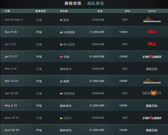 日前,V社终于更新了2018-2019赛季职业巡回赛的页面信息,同时也揭晓了两个Minor赛事。
