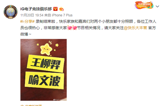 IG战队在夺得S8全球总决赛冠军之后受到了多方的关注,娱乐圈也将目光看了过来。昨天下午,IG战队的ADC 选手Jackrylove和辅助选手宝蓝就参加了快乐大本营的录制,和当红明星黄子韬、易烊千玺同台。