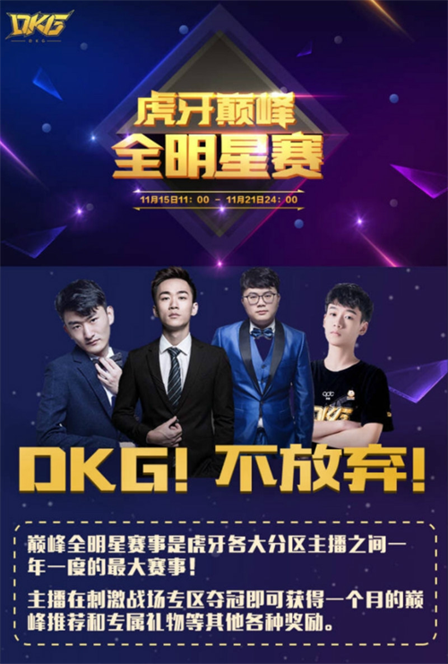 娱乐圈有“金鹰节”,直播圈有“全明星赛”。近日,虎牙巅峰全明星赛正在如火如荼的进行中,DKG作为刺激战场游戏中的人气战队,自然也有参与其中。巅峰全明星赛是虎牙各大分区主播之间的一年一度的重大赛事,也就是说DKG的四位成员,冬季、晚玉、不求人和骚皮皮,有一位能够在比赛中拿到冠军的话,就能够获得一个月的巅峰推荐以及专属礼物,还能登上虎牙年度盛典的舞台。