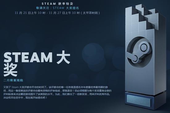 此外,Steam也开启了年度大奖的活动,大家可以提名自己心目中的“年度最佳游戏”等各种奖项。本次活动将截止到11月27日,明年2月正式揭晓各奖项得主。