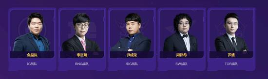 2018年年度最佳教练提名:IG.Kim金晶洙、RNG.Heart李官炯、JDG.Homme尹成荣、RW.Steak周律希、TOP.罗盛