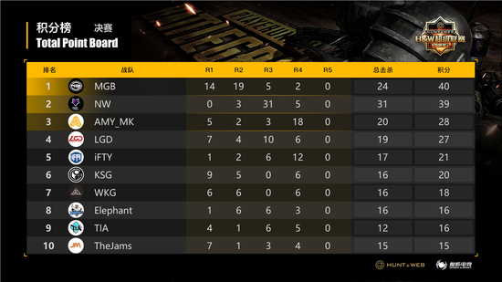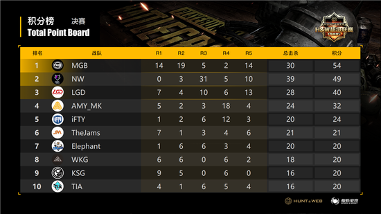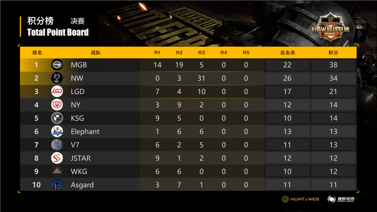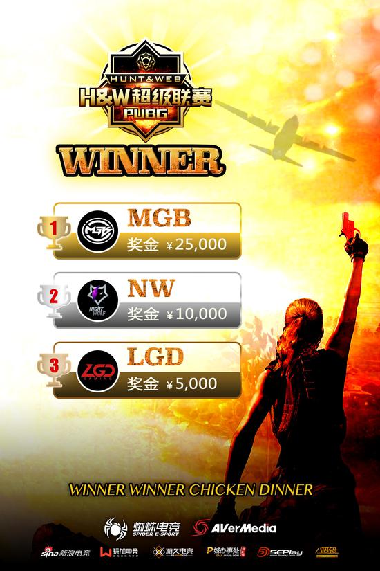 经过5局的艰苦鏖战,最终MGB战队夺得冠军,NW战队获得亚军,LGD获得季军!也感谢其他战队一同为我们奉献的精彩比赛!最后再次感谢本次比赛的协办方新浪电竞,以及赞助方圆刚采集卡,同时还感谢玩加电竞 、P城办事处 、PUBG八倍镜 、游久电竞和5EPlay的大力支持,蜘蛛电竞H&W超级联赛第三季到此结束,我们下个比赛见!