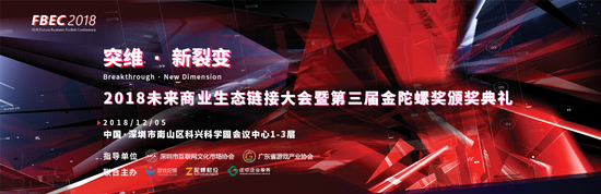 12月5日,由深圳市互联网文化市场协会、广东省游戏产业协会指导,游戏陀螺、陀螺财经、正中企业服务联合主办的2018未来商业生态链接大会暨第三届金陀螺奖颁奖盛典(简称FBEC2018)在深圳科兴科技园盛大开幕。
