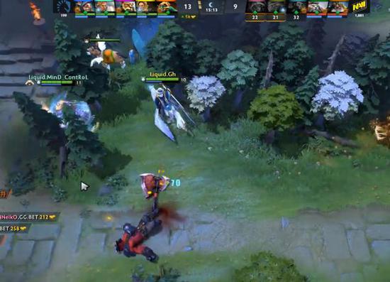 21分半Na'Vi突袭中路,套着墨涌的幻影刺客开启BKB一通输出,怎奈人品太差就是不出暴击,幻影刺客见情况不妙撒腿就跑,Liquid怎肯放过,他们追到下路河道留下黑鸟幻影刺客和沉默三人!