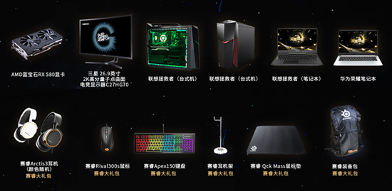 除此之外,还将抽出本届完美盛典锦鲤人选,奖品包括赛睿大礼包、联想台式机、AMD蓝宝石RX580显卡、三星 26.9英寸2K高分量子点曲面电竞显示器、华为荣耀笔记本电脑。