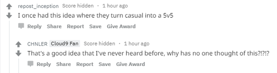 又有一些玩家提出为什么 V 社不愿意做一个 5v5 的休闲模式,就与竞技的规则一样,只是不设计到段位的升降,娱乐为主。就像隔壁守望先锋一样,区分“快速游戏”和“竞技比赛”。