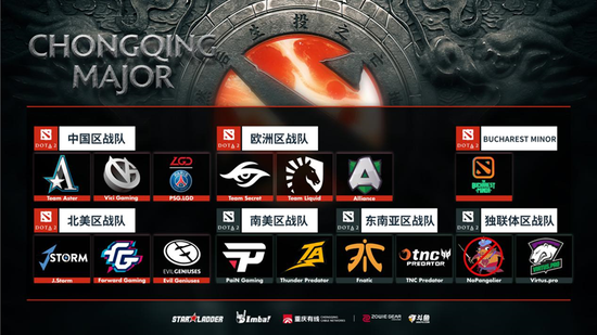 参赛战队:六大赛区预选赛15支出线战队+布加勒斯特Minor冠军