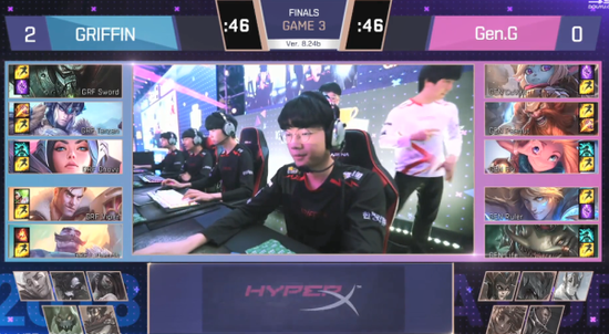 29分钟GRF再次直接偷大龙,猪妹大招和布隆大招直接阻止酒桶抢龙。拥有大龙BUFF和4条小龙的GRF几乎握住了冠军的奖杯。GRF带着大龙BUFF直接冲进高地团灭后拿到比赛的胜利!夺得KeSPA杯的冠军!