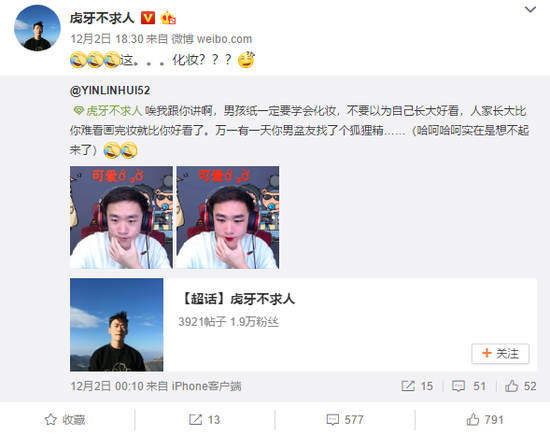 年终将近,不求人听说有粉丝一边看他直播一边复习功课,他立即在微博告诉所有粉丝,安心复习,等考完试再过来看直播。他说:“你们的未来比我更重要”。