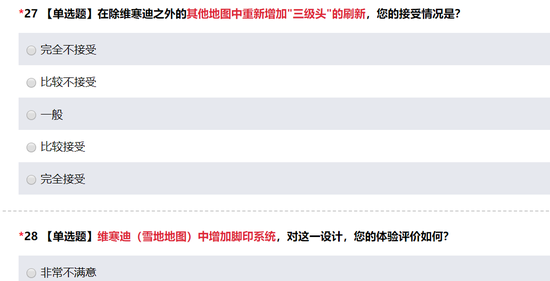 这份调查问卷开头就着重问了一些问题,关于最近绝地求生一次大更新维寒迪内容的看法。在后来的一些问题中,腾讯似乎特别关注游戏上线以来的不分大小的改动,比如重新改回三级头的设定: