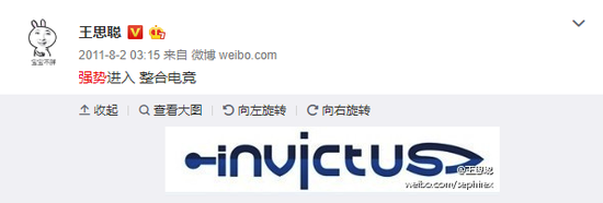 2011年8月2日凌晨,王思聪发了一条微博,表示自己将正式进军电竞圈,随后他收购了当时新生的豪门战队CCM,将其更名为Invitus Gaming,这就是大家后来所熟知的iG俱乐部。