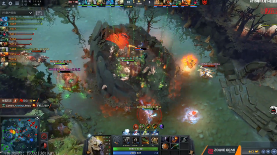 第四局,EHOME手握赛点抢下了小小,并且针对对方的兽王选了老陈,针对TB选了孽主。最后一手EHOME拿出鹿乃绝活老鹿,Gambit则是凤凰。