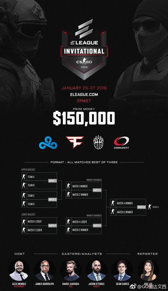 ELEAGUE CS:GO邀请赛是ELEAGUE在2019年的第一项CS:GO赛事。与他们以往的比赛不同,ELEAGUE只邀请四支战队进行比赛,但这四支战队都是名誉全球的知名战队,并且ELEAGUE邀请赛将是四支战队新阵容首次亮相的舞台。