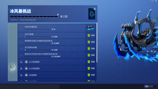 与此同时,《堡垒之夜》开启“冰风暴挑战”,每天解锁两个任务目标,每个奖励500点赛季经验值,帮助玩家快速提高赛季等级。当玩家完成所有任务,即可获得珍稀滑翔伞,与“英雄级卡”最终奖励“寒霜领主”皮肤更搭!