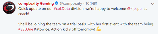 队伍将对她进行试训,她带队参加的第一项比赛将是于明日进行的ESLOne卡托维兹!