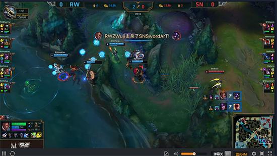 双方首局比赛开始后,RW中路辛德拉对对手冰女的压制很凶,补刀上也领先于对手,同时在打野奥拉夫的节奏带动下,6分钟率先拿到第一条小龙水龙,RW初期取得小优势。