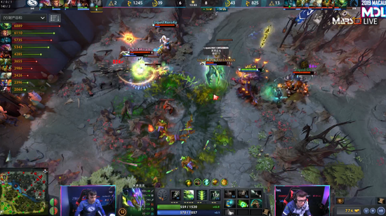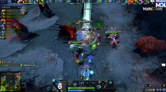 同样的剧情,10分半的时候上路再度爆发小规模团战,EG虽然有自家的中单大圣在场,但上帝之手的治疗让他们绝望,被击杀三人。12分半上路EG被杀了一个四人团灭,只有滚滚逃生。