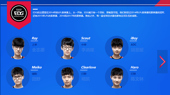 在2018赛季,无论是老将持续稳定的出色发挥还是新秀绽放潜能的精彩表现,都让我们对保持原队员阵容征战2019赛季充满信心。期待新的教练组能够结合队员实际情况,制定相应的战术策略,发挥出队员的个人能力优势及潜能,为EDG取得更好的成绩与突破。