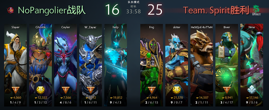 本次Summit线上赛的最后一局,比想象中来的平淡了许多。有了前两场比赛的“演习”,明眼人都能感觉到“不要滚滚”大势已去。到了BO5的最后一个回合,“不要滚滚”给三号位Ghostik点出了滚滚,而且这个滚滚后面还做了两个雷锤。当然,Naive-的TB还是一如既往的优秀。只看TB的数据,你完全想不到Spirit居然是胜利的一方。但是在比赛中,你会发现BO5的决胜局在很大程度上概况了整个BO5。其中,Nine的哈斯卡就像第二局一样无脑撞人——本身确实没什么用,但这个行为却给大哥猴子制造了输出环境。除此之外,再次拿到了土猫的Biver又将全部的注意力集中到了对面光法的身上。他和酒仙组队,打团只杀光法。在摧毁了敌人的后排后,TB不足为惧。28分钟的中路团战失利后,“不要滚滚”就失去了胜利的希望。