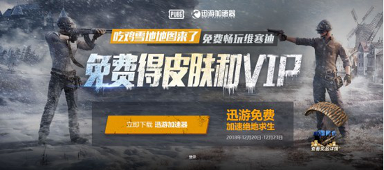 这次雪地图上线的联动活动,对于玩家来讲可以说是稳赚不赔,各位玩家可通过游戏大厅、迅游加速器官网、客户端、公众号等渠道参与,希望大家都能在雪地图里大吉大利,晚上吃鸡。