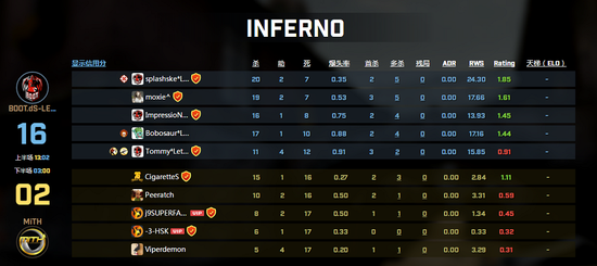 在Inferno这张地图上,开局赢下手枪局的BOOT没有给对手任何机会,在5名队友完美的配合下只让MiTH在长枪局拿下两分,而BOOT激进的打发打击了MiTH的自信心,上半场BOOT13:2获得大优势,下半场再次赢下手枪局的BOOT最终16:2大比分赢下了这场比赛。