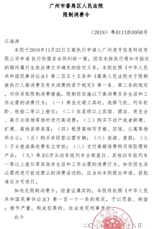 嗨氏现在被老东家虎牙告上法庭,要赔偿4900万违约金,但是嗨氏没有这么多,所以现在已经成为了失信人了,还不如不跳槽,你们觉得呢?
