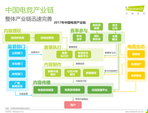 基本的概念聊完了,咱们说说现状吧。査老师分别从政治、经济、市场等多个方面分析了如今电子竞技在国内的发展现状:国家政策支持扶持,资本涌入拉动经济、市场份额逐渐增长、衍生产业百花齐放。总得来说就是:中国电子竞技产业正以一种如“雨后春笋”般的状态,快速发展、茁壮成长。