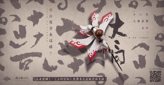 2018年12月,《王者荣耀》则联手《国家宝藏》开启“荣耀计划”,推出李白星元皮肤:国家宝藏-上阳台帖,以英雄皮肤传承国宝内核,让传统书法文化“活”起来。