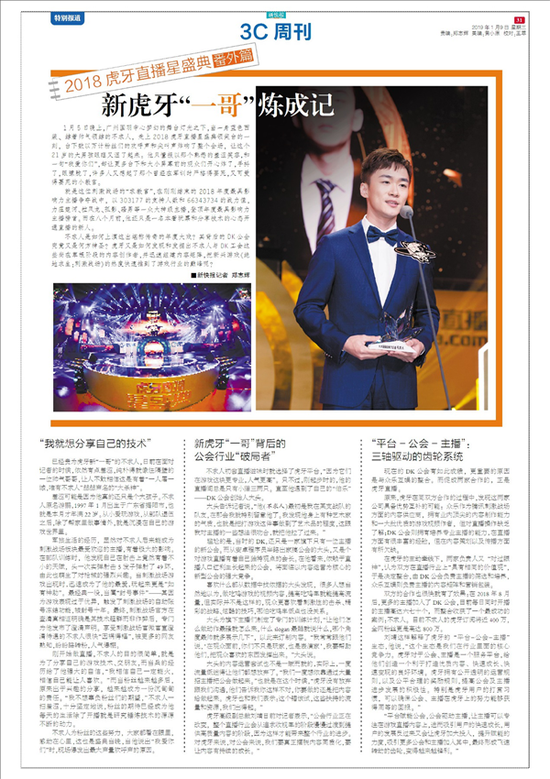 2019年1月9日,《新快报》发布了一篇《新虎牙“一哥”练成记》的文章。这篇文章意义非凡,往小的说是游戏主播、直播平台得到了传统媒体的认可,往大的说是游戏行业得到了大众传媒的接纳。