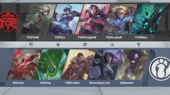 14分钟,IG选择在下路开团,结果Top螃蟹Tp到场,最终IG输掉团战,但是Top在击杀后没能及时回防反而丢掉一血塔。IG经济反而领先2000。中期,Top团战优势期,IG团战几度不敌,连续让出野区资源,双方局面一度僵持。
